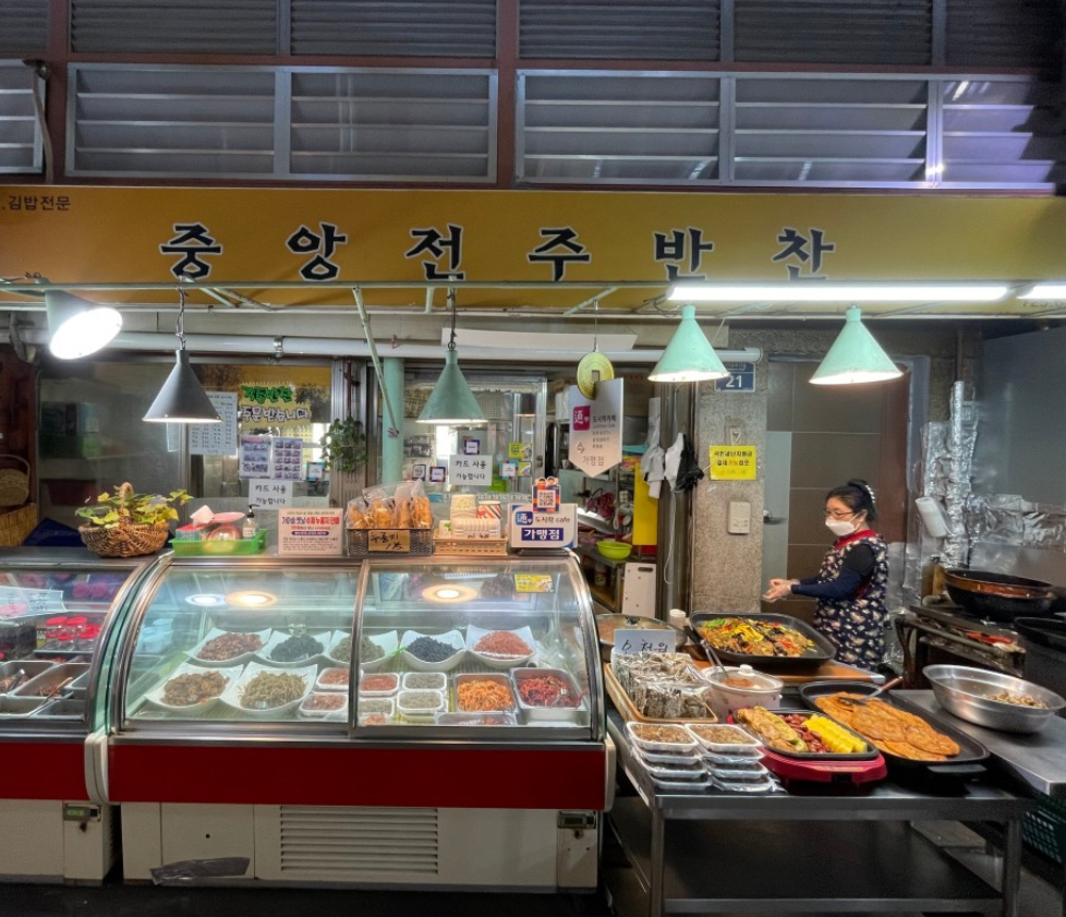 도시락을 다 채웠다면, 이제는 본격적으로 먹방 타임입니다. 시장 안에는 엽전으로 구매 가능한 반찬 외에도 다양한 먹거리가 있습니다.